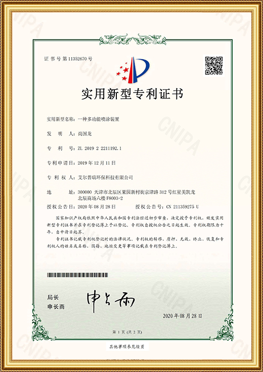 實用新型專利證書(一種多功能噴涂裝置)